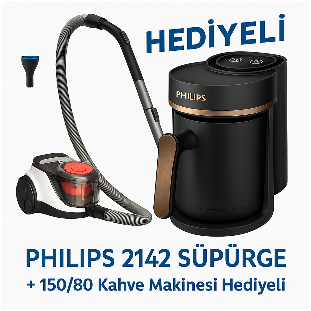 Philips 2142 süpürge alana orijinal Philips 150/60 kahve makinesi hediye! Güçlü temizlik ve kahve keyfi bir arada, Nurkan Ticaret güvencesiyle.