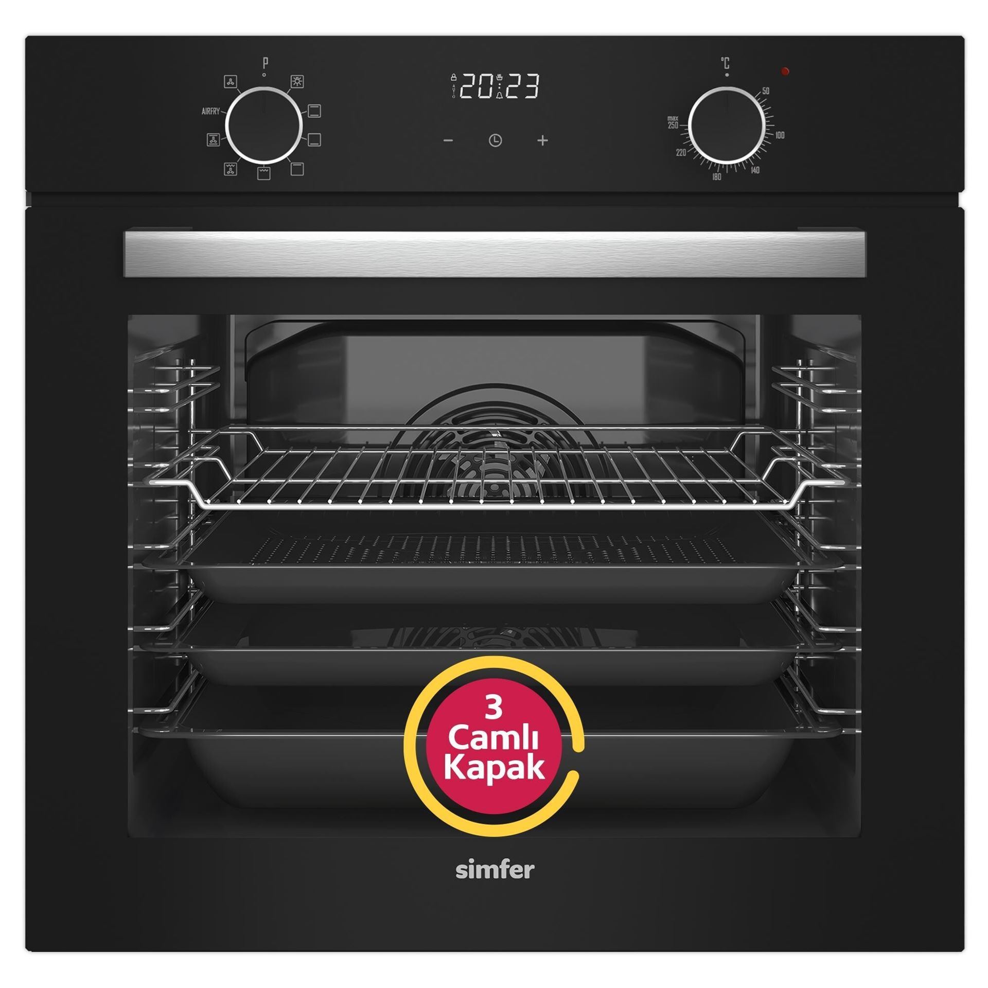 Simfer 8215 – Airfry Plus Siyah Cam Ankastre Fırın (Dijital Saatli)