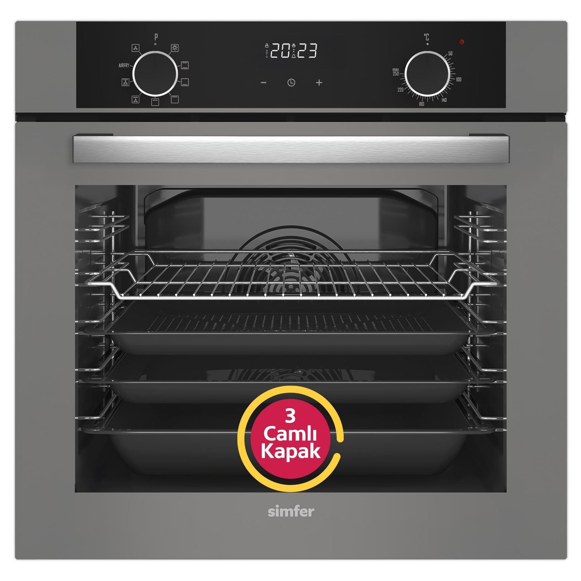 Simfer 8217 – Airfry Plus Gri Cam Ankastre Fırın (Dijital Saatli, 10 Fonksiyon)