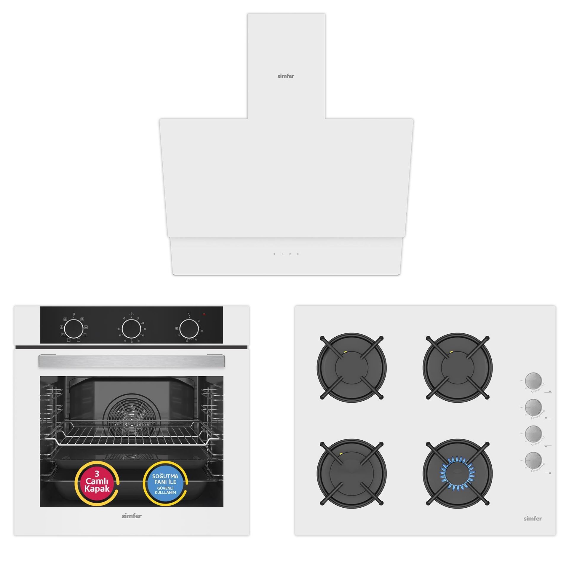 Simfer 9 Fonksiyon QS Beyaz Ankastre Set – 8221 Fırın + 3507 Ocak + 8704 Davlumbaz